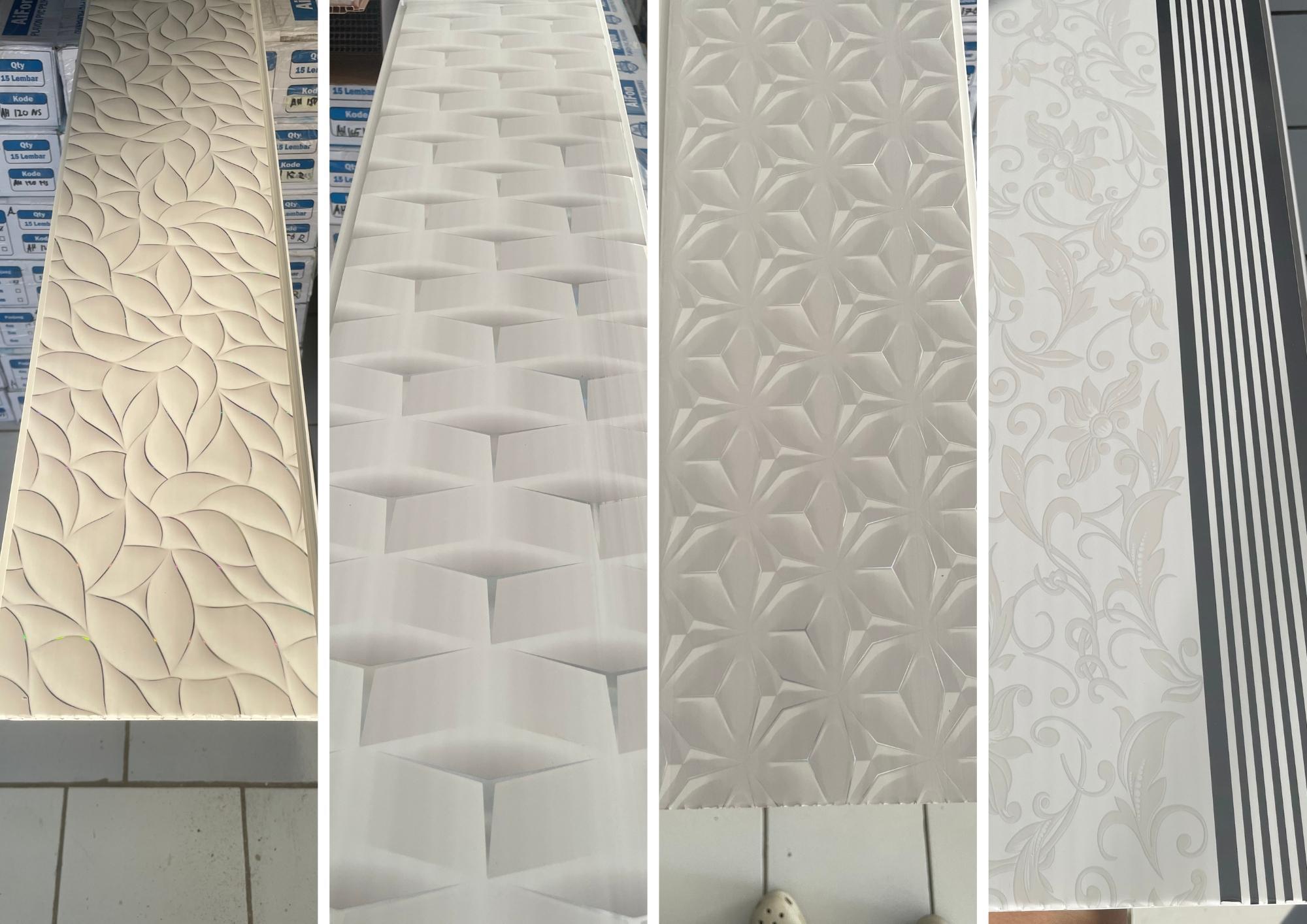 Penggunaan bahan PVC berkualitas tinggi yang tahan terhadap cuaca, air, dan kelembapan. Menjadikan produk kita tahan lama dan mudah perawatan. Desain inovatif dan beragam untuk memenuhi berbagai gaya dan preferensi desain interior. Komitmen pada keberlanjutan dengan menggunakan bahan ramah lingkungan dan proses produksi yang efisien.
